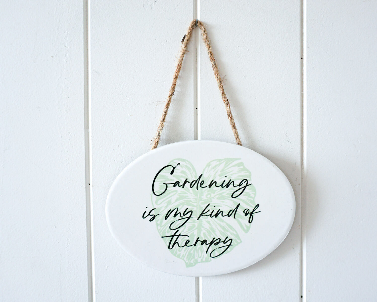 Hanging Wall Plaque - Oval - Gardening is My Kind of Therapy - 17x12